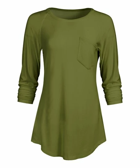 This stretch-enhanced long-sleeve tunic features a flowy hemline that offers easy all-day movement and style.