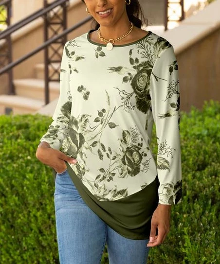 Expand your mix-and-match options with this versatile tunic boasting long sleeves for breezy-day comfort.