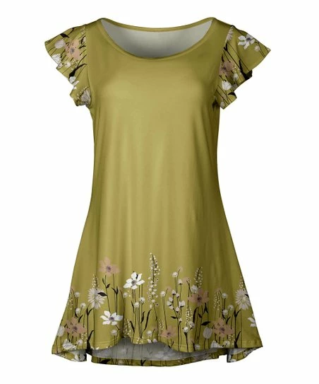 Perfect for pairing with your favorite leggings, this tunic features a flutter sleeve and stretch-enhanced fabric for your comfort.