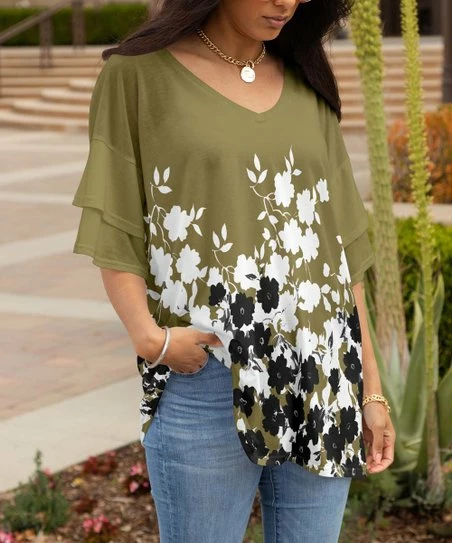 Add some charm to your day with this layered-sleeve tunic boasting an allover print and a lightweight, stretch-imbued fabric for comfortable casual wear.