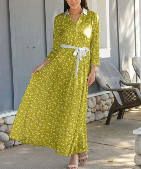 Boasting a bal collar, button-up front and tie-waist, this lightweight maxi dress keeps you comfortable and colorful whatever the weather.