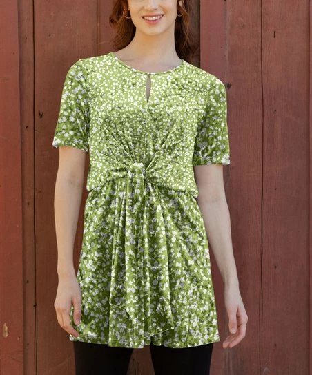 This soft, velvet top features a wide tie-waist, and a keyhole at the neckline adds a pop of intrigue.