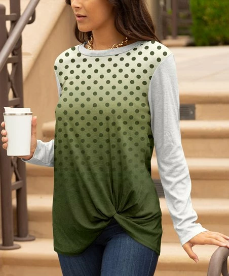 Upgrade your everyday-casual essentials with this ombré tunic embellished with a classic crewneck and a twist-front detail for stylish flair.