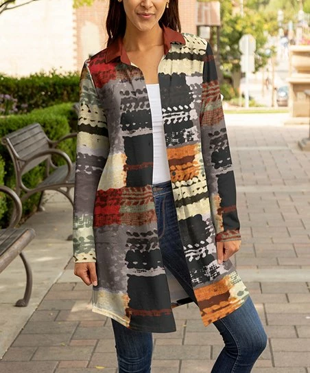 This longline shacket is cut from soft and stretchy fabric for easy layering.