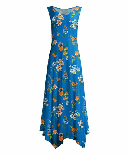 Add flowy comfort to your sunny day rotation with this lively maxi dress crafted with a handkerchief hem and stretch-enhanced fabric.
