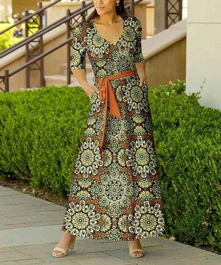 Flow through the day in this graceful maxi dress featuring a flattering surplice bodice and tied sash at the waist. Side pockets.