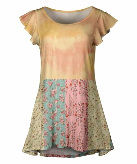 Add a fun flair to your everyday ensembles with this charming tunic boasting flutter sleeves and a unique print.