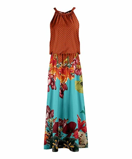 Express airy laid-back style in this sunny-day sleeveless maxi dress designed in bold hues paired with a flattering blouson silhouette.