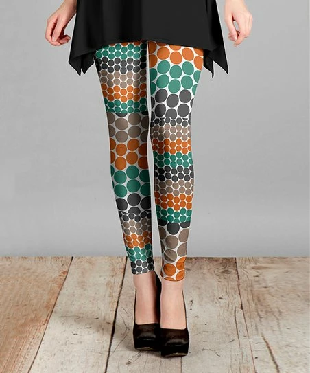 Lily | Orange & Turquoise Abstract Circle Leggings – Women & Plus