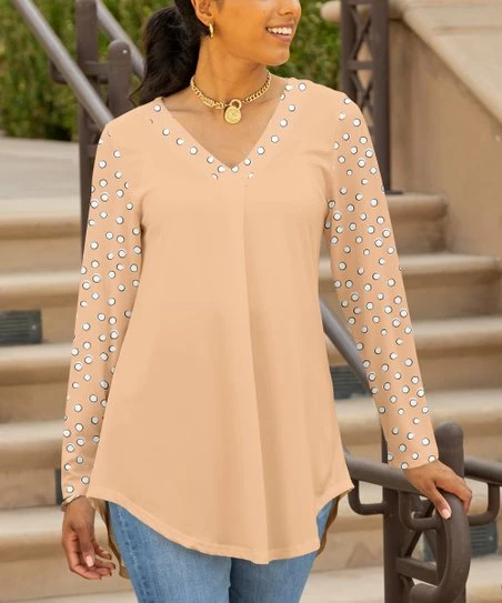 Evoke flirty appeal into your savvy wardrobe when you effortlessly pair this stretch-enhanced, statement-making tunic with your favorite pants at work or on the weekend.