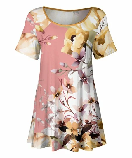 Lily | Pink & Beige Floral Scoop Neck Tunic – Women