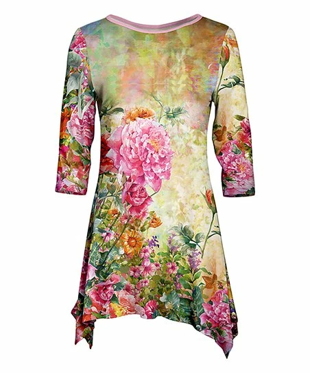 Ready yourself for shifting temps with this artsy tunic framed by three-quarter sleeves. A sidetail hem adds a little swing to your steps.