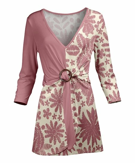 Featuring a flattering crossover v-neck cut and a stunning floral print, this stretchy tunic has the wearability and style of a dependable everyday top.