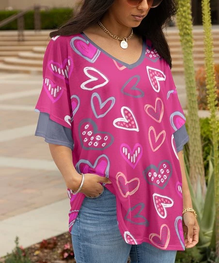 This flowy tunic offers effortless style with a classic v-neck, bold pattern and layered bell sleeves.