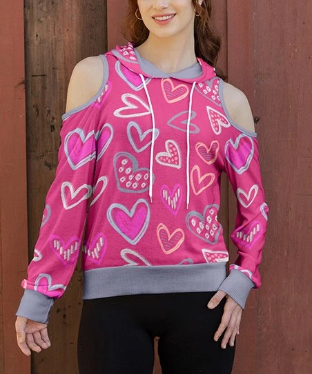 Daring shoulder cutouts give this lightweight knit hoodie an added dose of pizzazz.