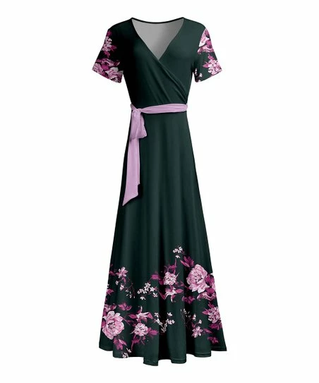 With a flared skirt, a tie-waist, a V-neckline and a bold print, this lightweight maxi dress brings elegant movement and stretch-enhanced comfort to your everyday look.