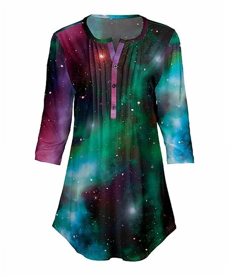 Flaunting a vivid, colorful design, this lightweight tunic adds bold style to your everyday ensembles with a button placket for a hint of classic flair. The stretch-enhanced material keeps you comfortable as your breeze through your day.