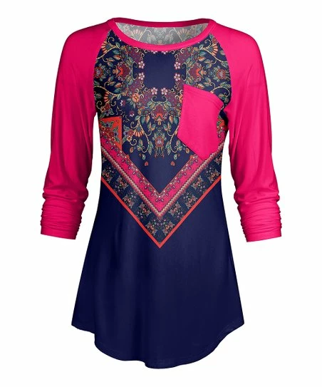 Relaxed tunic featuring stretch-enhanced fabric and a chest pocket .