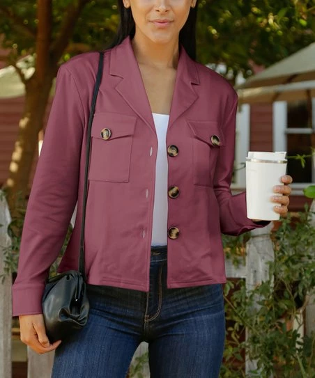 This button-up jacket is designed with chest pockets and a crisp collar.
