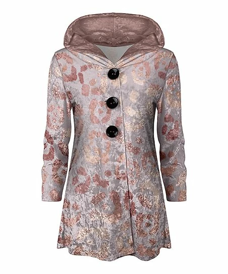 Soft velvet keeps you cozy in this flowing hooded tunic whose large buttons add a bohemian embellishment to your chilly-day look.