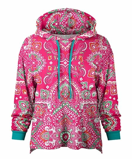 Cozy and fashion-forward, this adorable hoodie has the comfort you expect with stretch-kissed fabric and a classic profile, but the bold print infuses it with excitement. The addition of a split hem also makes it a bit more forgiving and comfy.