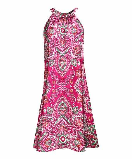 Head out for the evening in sophisticated style with this stretch-infused dress boasting a trend-forward yoke neck and vibrant Arabesque print.