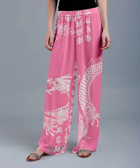 Lavish your carefree afternoons with the roomy comfort of these flowy palazzo pants finished with stretch-imbued fabric and a bright dragon print.