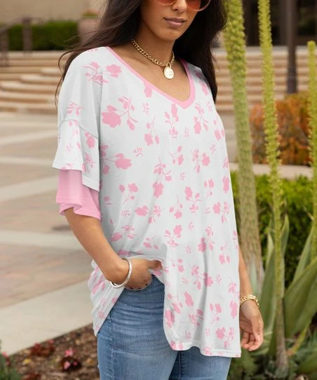 Crafted with stretch, this casual top features an airy fit and a face-framing v-neckline. Fluttery ruffle sleeves deliver drama.