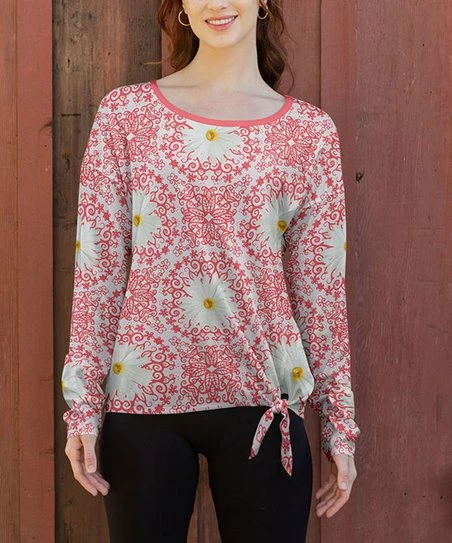This long-sleeve tunic features a scoop neckline and side-tie accents.