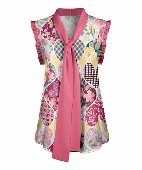 With ruffled short sleeves, a stylish tie-neck design and comfortable stretch-infused fabric, this tunic is a casual wardrobe essential.