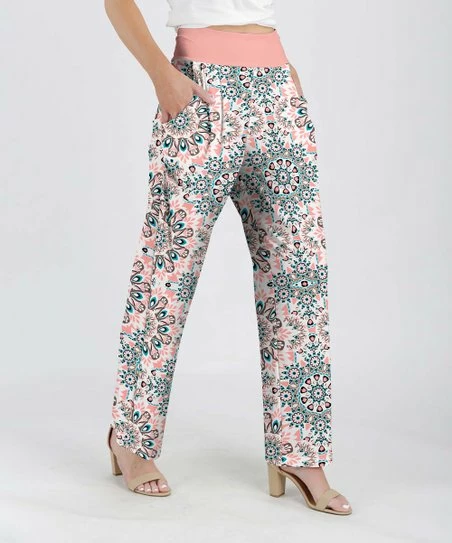 Stand out in these boldly patterned straight-leg pants featuring stretch-enhanced material and handy side pockets.