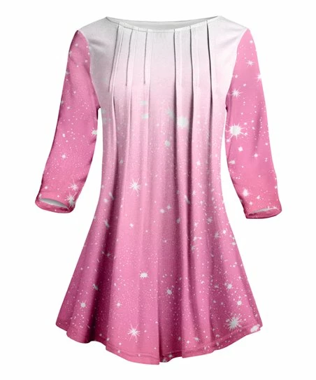 Add cheerful prints to your everyday wardrobe with this pleated three-quarter sleeve tunic that is crafted with a touch of stretch for a comfortable fit.
