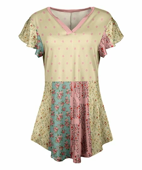 Restock your wardrobe rotation with this v-neck tunic featuring flutter sleeves and a curvy draped hem.