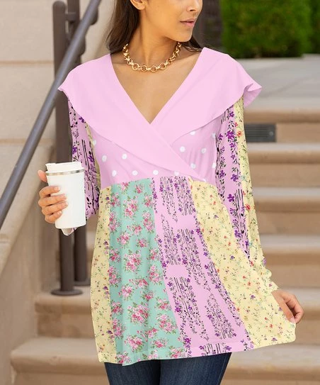A flattering V-neckline and an elegant surplice silhouette grant timeless allure to this tunic, and its supersoft and stretch-infused fabric ensures an always-comfy fit.