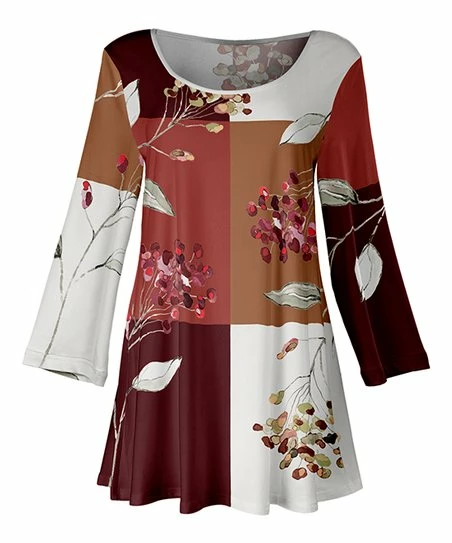 Turn heads as you cruise through the weekend wearing this scoop neck tunic that flaunts a wow-worthy print while delivering the coverage of three-quarter sleeves.