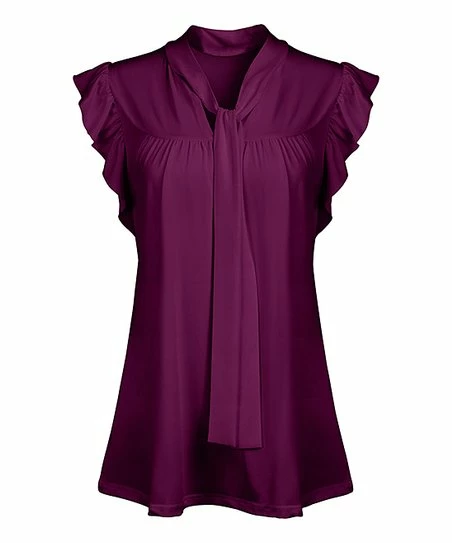 Refresh your work-to-weekend wardrobe with this stretch-blend tunic designed with flutter sleeves and a tie-neck detail.