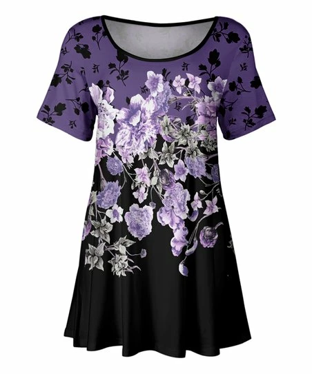 Framed by short sleeves, this floral-patterned scoop neck tunic prepares you for climbing temps.