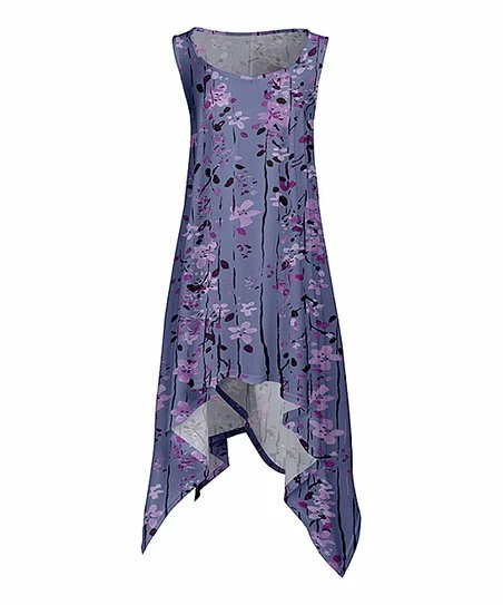 Craft your essential warm-weather collection with this sleeveless dress defined by a bold floral print and a textured shark-bite hemline that gently sways against your legs as you stroll.