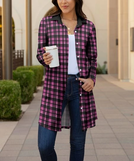 Lily | Purple & Black Plaid Collared Longline Jacket – Women