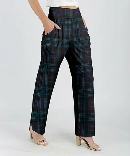Casual pants featuring a plaid print and handy side pockets. Light, stretch-infused fabric.