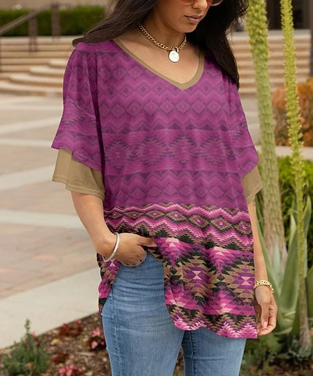 With a flowy fit and bold print, this v-neck tunic is just what your next casual day needs to keep you cool and comfy with effortless charm.