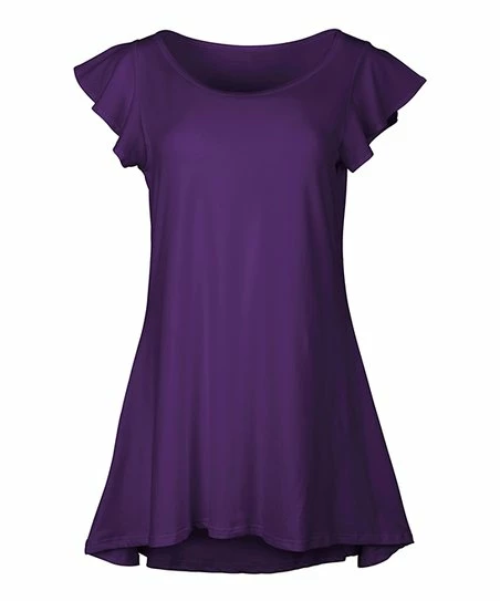 The flared hem and fluttering sleeves of this tunic add dynamic movement to your casual looks.