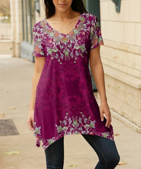 Style up your favorite pair of jeans or leggings with this tunic crafted in a comfortable fabric and dynamic print.