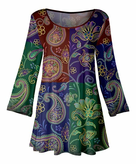Turn heads as you cruise through the weekend wearing this scoop neck tunic that flaunts a wow-worthy print while delivering the coverage of three-quarter sleeves.