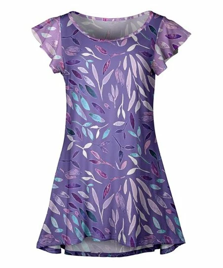 This soft and stretchy tunic is accented with fluttering sleeves and a swinging body.