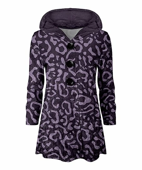 Stay extra-cozy in this button-up hoodie that features plush velvet fabric and an eye-catching print.