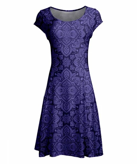 A sweet classic to add to your wardrobe, this cap-sleeve dress hugs your curves gently through the bodice before flaring to a swishing skirt. Stretch-blend fabric promises comfort.