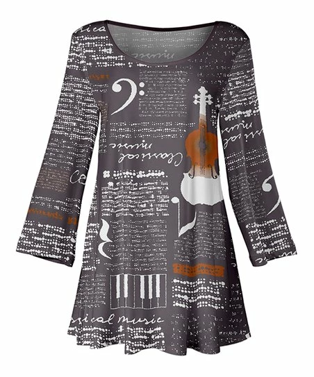 Featuring long sleeves, a sloping neckline and a relaxed, swingy cut, this orchestral-print tunic hits all the right notes.