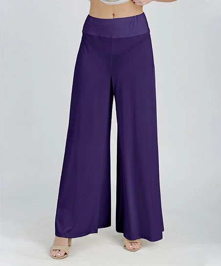 Add easygoing style to your everyday wardrobe with these flowy palazzo pants flaunting stretch-infused fabric and a solid hue for simple pairing. The wide waistband ensures a comfortable and form-flattering fit.