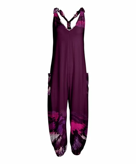 Settle into comfort wearing this hippie-chic jumpsuit featuring twisted racerback straps and slouchy pants. Spacious side pockets give somewhere for slim essentials to rest.